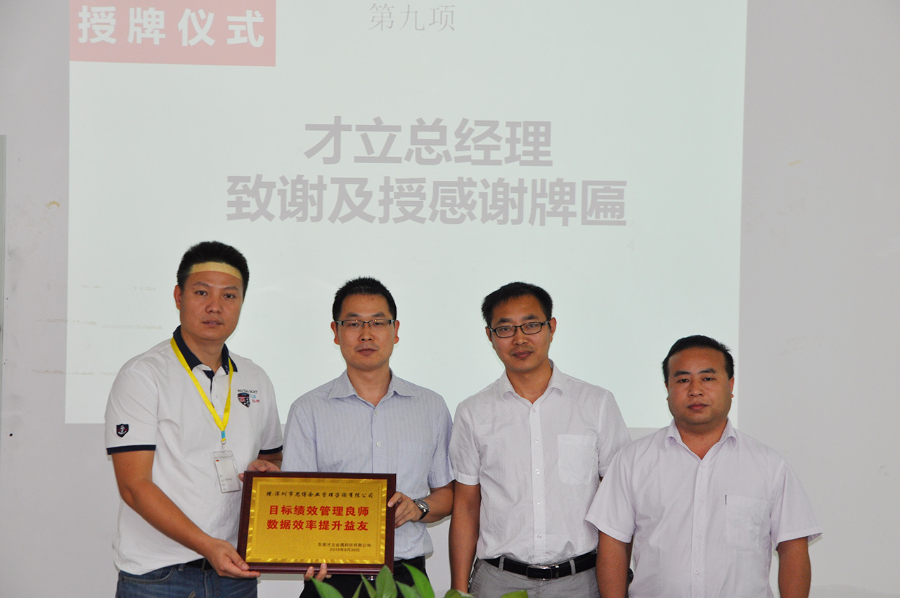 2016年9月29日,在深圳思博輔導(dǎo)老師(樂滿林老師、王建華老師)的指導(dǎo)下,東莞市才立金屬科技有限公司《年度經(jīng)營計劃與全面預(yù)算管理》項目總結(jié)會,在才立公司會議室舉行。