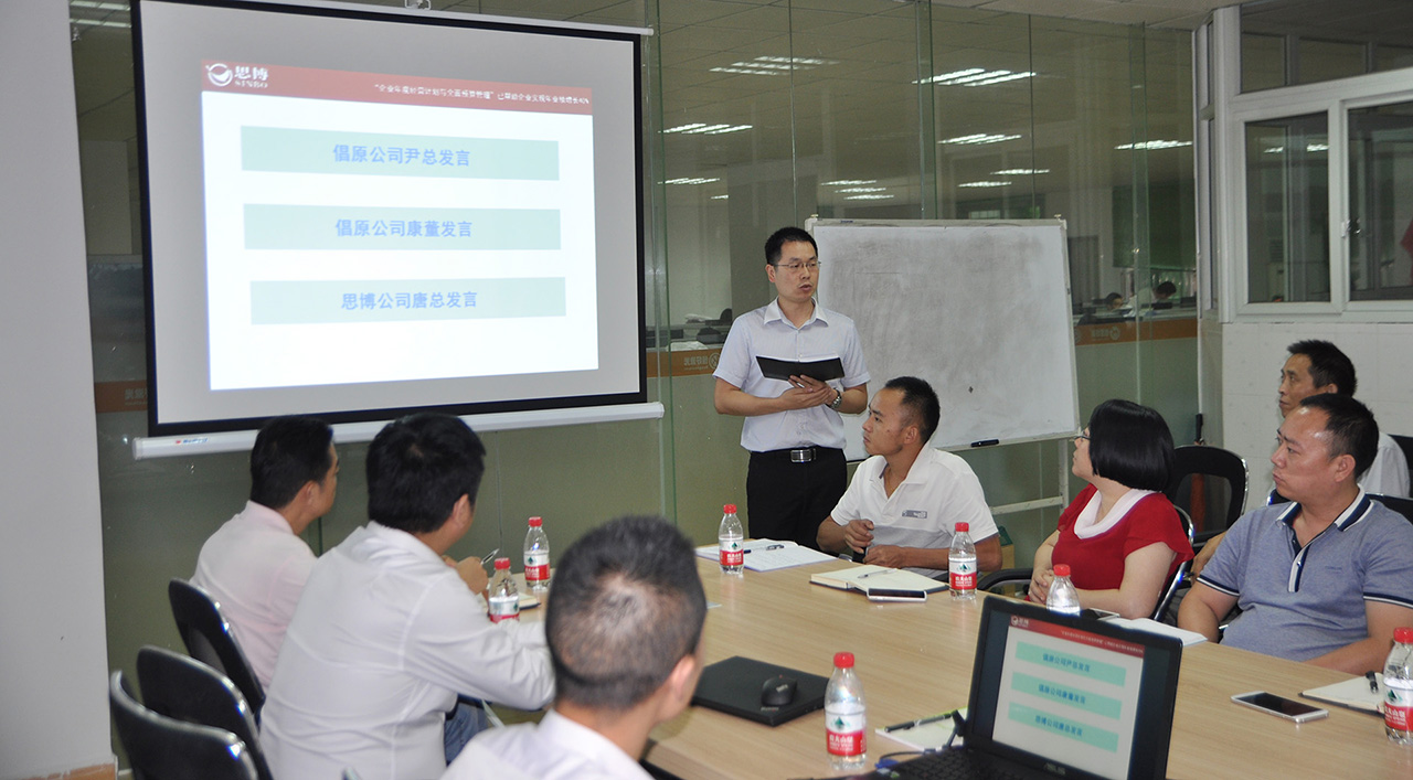 會議中倡原董事長康總再次向全體與會人員說明了聘請深圳思博咨詢公司的目的,也再次肯定了兩位老師的實力和工作態(tài)度,并對思博團隊有了充分的信心。相信在思博團隊的帶領(lǐng)下,倡原公司肯定會越走越好,感謝思博團隊的全心全力付出。