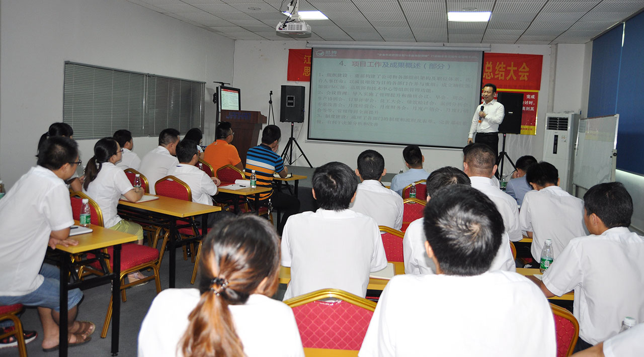 總結(jié)會開始,由各部門負責人一一在本次管理變革過程中的成長歷程進行匯報,及表現(xiàn)突出者進行獎勵的表彰。思博項目組張誠老師針對本次管理變革過程中所取得的成績、過程中還存在的問題點及后續(xù)的改善進行了詳細的闡述。