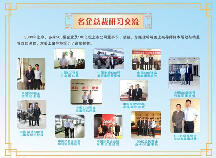 > > 輔 導(dǎo) 過 的 企 業(yè) < < 汽車行業(yè):豐田、本田、沃爾沃、宗申、中通 家電行業(yè):格力、海爾、美的、蘇泊爾 食品行業(yè):金鑼、雙匯 其他行業(yè):中國石化、中國兵器、魯能、九牧、五征